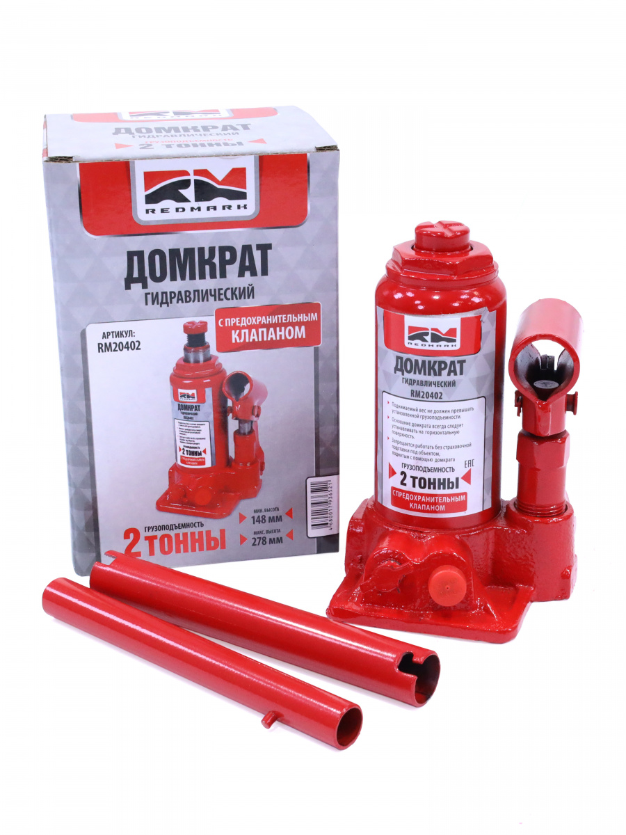 Домкрат гидравлический 2т.с перепускным клапаном (высота мин/макс 148/278мм) "RedMark"