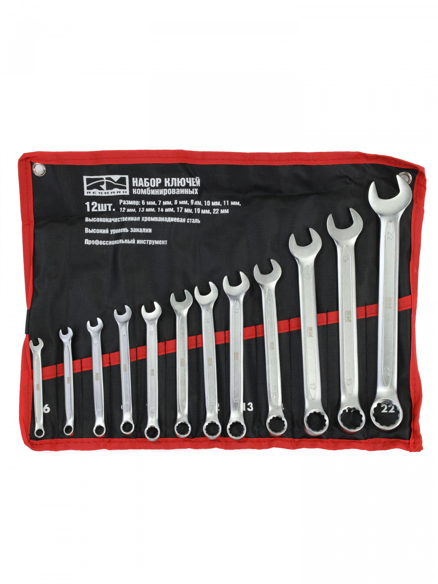 Набор ключей комбинированных 12 шт. (кт.) (6,7,8,9,10,11,12,13,14, 17,19,22 мм) (холодный штамп) CR-V "RedMark" в сумке