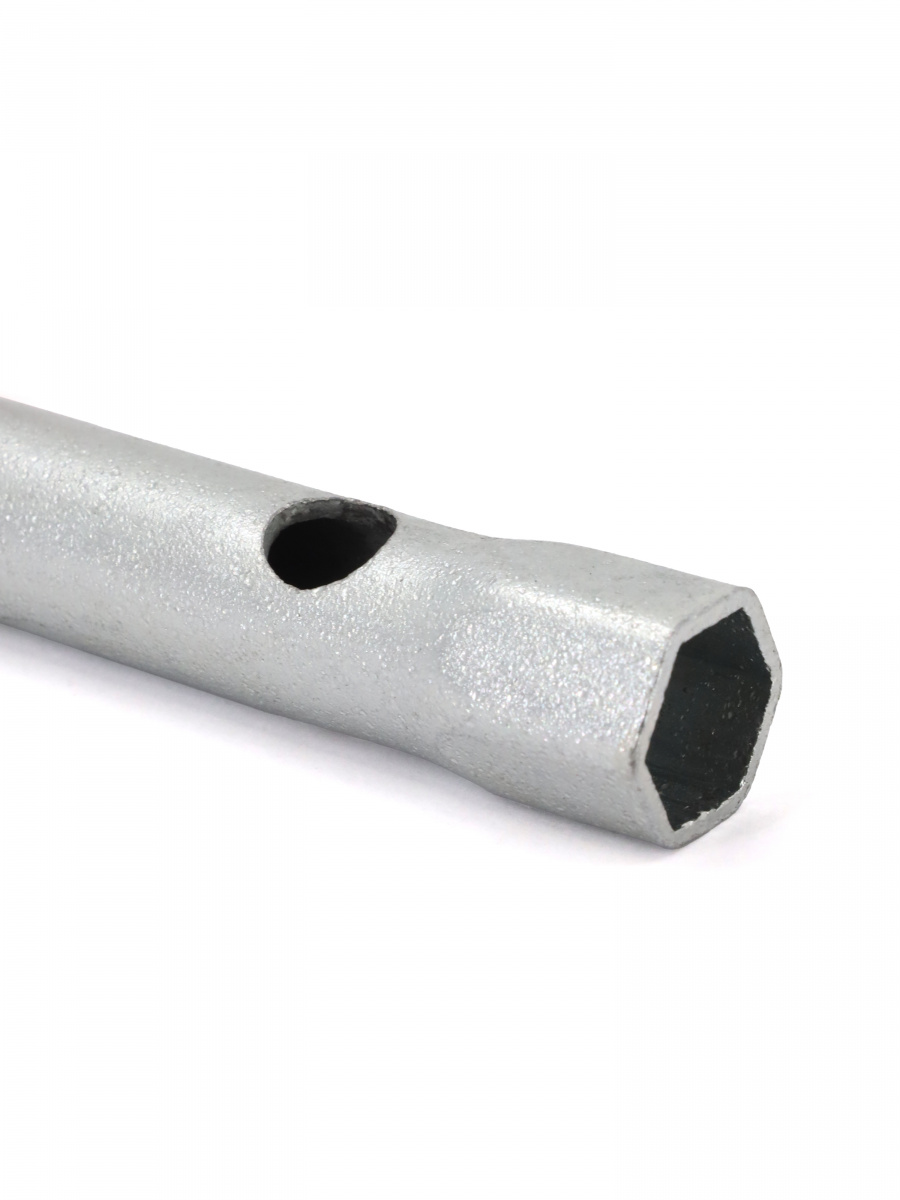 Ключ трубчатый штампованный - это ключ, который используется для затягивания и ослабления резьбовых соединений на трубах. Он имеет форму трубки с двумя головками на концах, которые позволяют захватывать трубу и затягивать или ослаблять соединение. Применяется для работы со шпильками, датчиками, свечами зажигания. В качестве привода применяется вороток