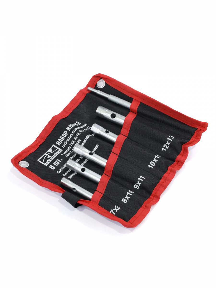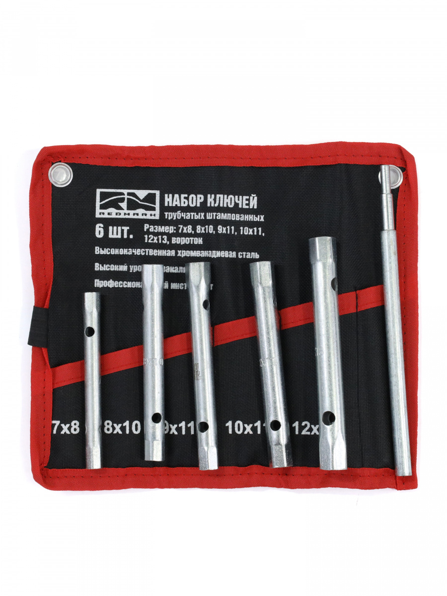 Набор ключей трубчатый штампованный 5+1 шт (7х8 - 12х13 + вороток) "RedMark" в сумке