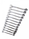 Ключ гаечный комбинированный трещотка – это инструмент, который совмещает в себе функции рожкового и накидного ключа, а также имеет трещотку, которая позволяет быстро и удобно работать с резьбовыми соединениями. Он используется для работы с крепежными элементами разных размеров и форм. Комбинированный трещоточный ключ имеет удобную рукоятку и храповой механизм, который позволяет поворачивать гайку или болт без необходимости перехватывать ключ.