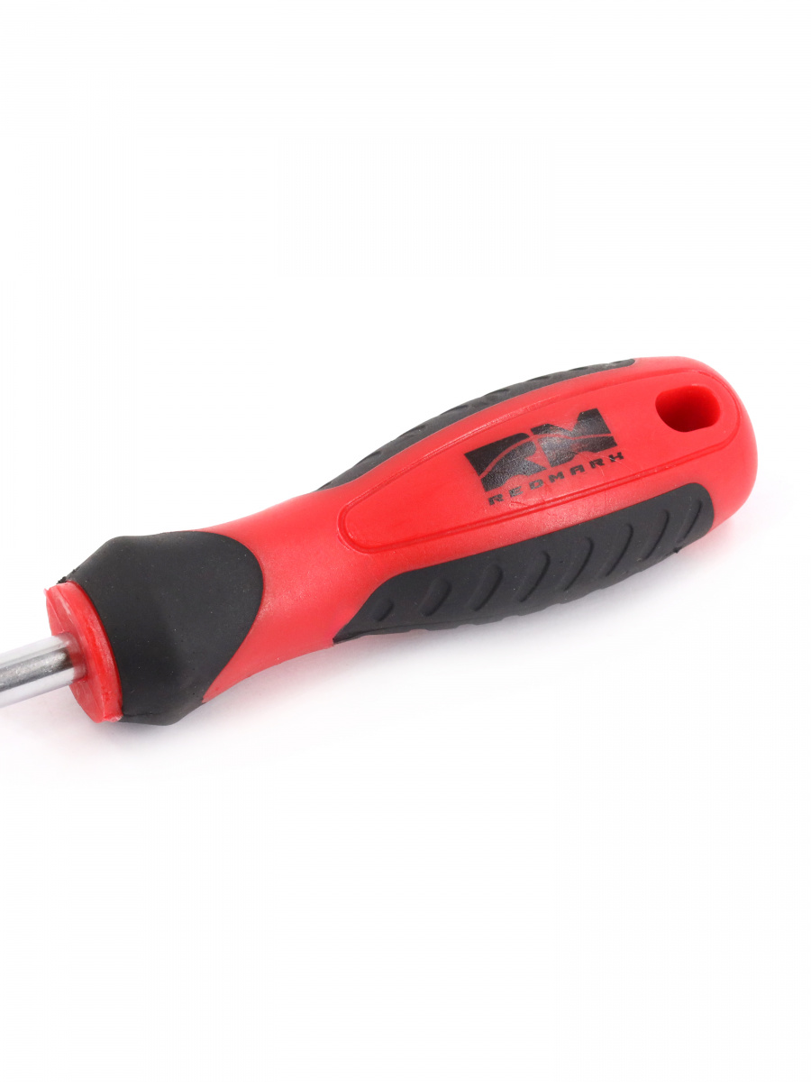 Отвертка REDMARK предназначена для выполнение как лёгкого кручения, так и на приложение большего усилия, форма рукоятки, состоящая из прорезиненного элемента и пластика, устойчивого к влиянию агрессивных веществ, надёжно фиксируется в руке в момент кручения, и не позволяет отвёртке скатываться по наклонной поверхности.
